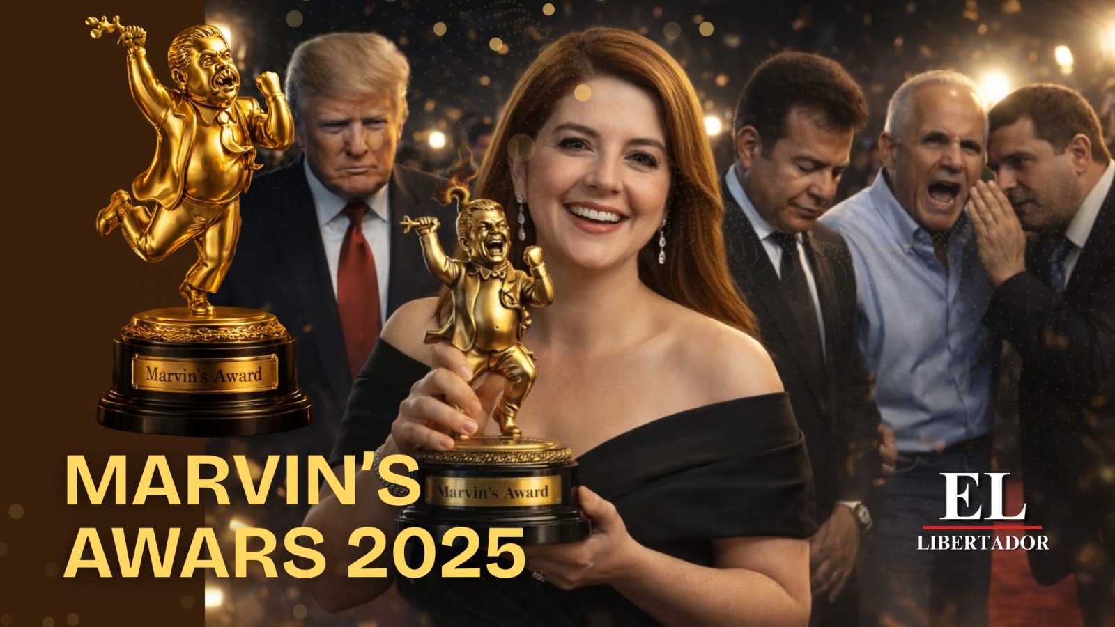Y en este nuevo año, ¡arrancamos con todooo la cultísima edición de los “Marvin’s Awards” 2025! ¡Suenen tambores, espanta suegras, trompetas y chillidos “anticomunistas”! A nuestras bellas malinches y forasteros amantes de la “republic banana”, les recordamos que los “Marvin’s” es la célebre estatuilla que EL LIBERTADOR otorga cada inicio de año a la gentuza hondureña consagrada para la historia como podrida bazofia de nuestra Nación ¡Congratulations!
